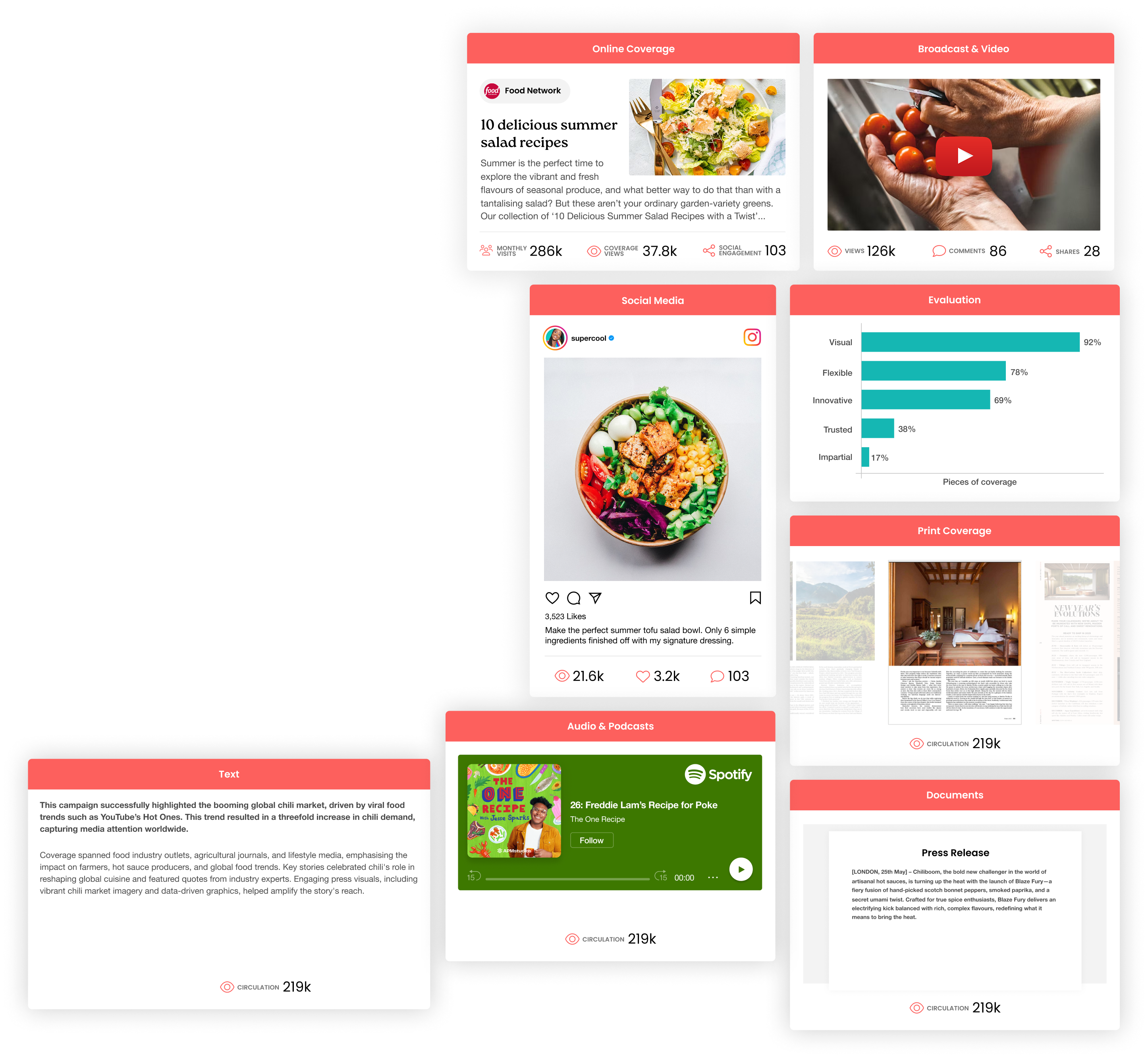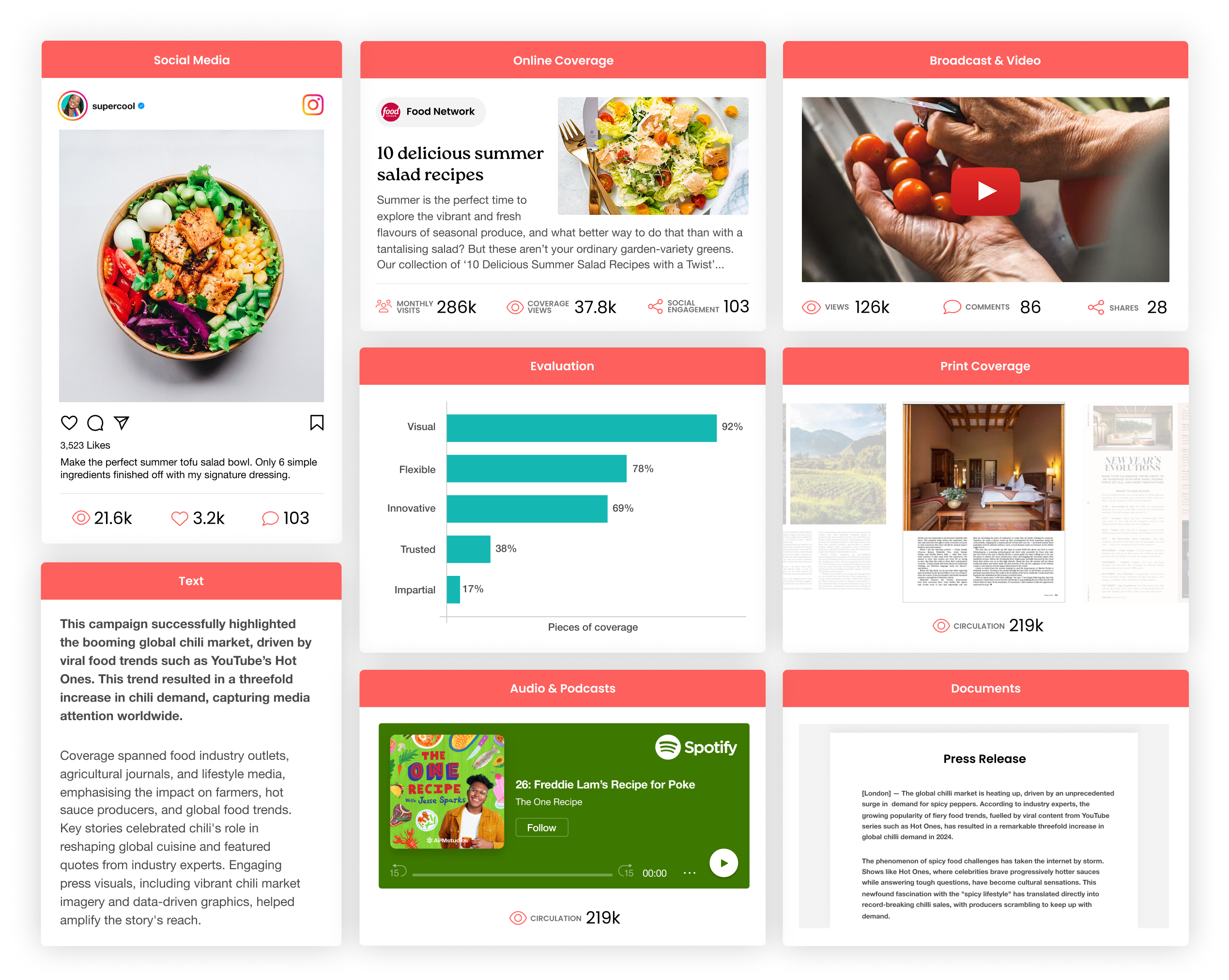 Releasd enables PRs teams to consolidate their reporting and communicate the full breadth of their activities, including: